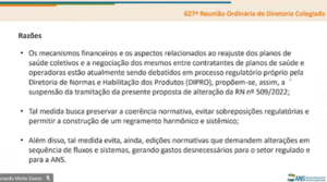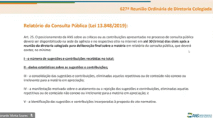 Assim, ainda que a etapa da consulta pública tenha sido formalmente concluída e aprovada, a decisão final sobre a norma ficará condicionada à maturação das demais discussões, de modo a possibilitar que a ANS apresente uma proposição normativa unificada, consistente e equilibrada, alinhada ao conjunto de reformas regulatórias que vêm sendo conduzidas pela Diretoria.